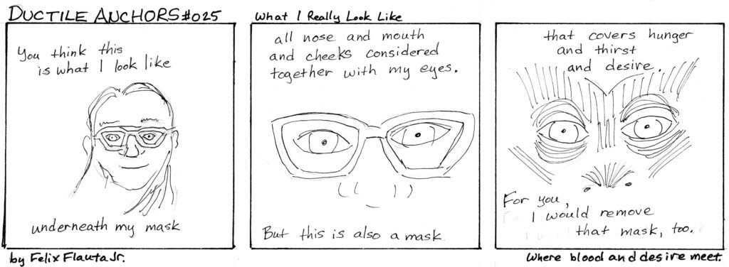 A student saw me without my mask and asked if that was what I really looked like. I had to use all of my willpower to keep from making a crack about how my good looks would be distracting for the class or something idiotic like that.